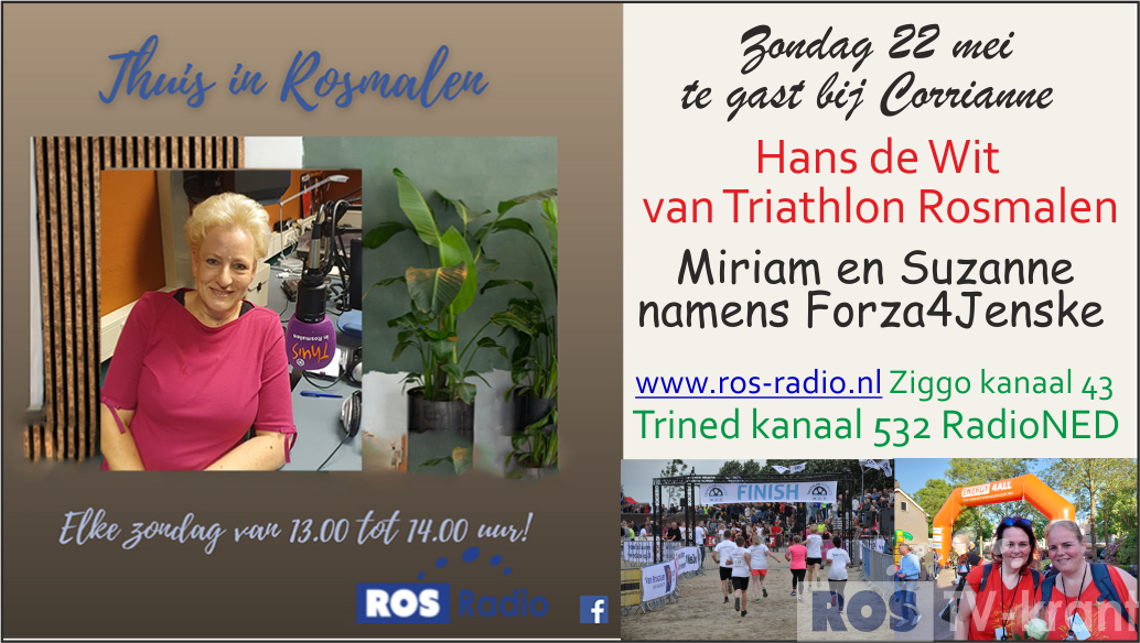 Aanstaande zondag 22 mei ontvang ik in de studio bij Ros Radio Hans de Wit, voorzitter van Triathlon Rosmalen die op zondag 19 juni weer plaats zal vinden.