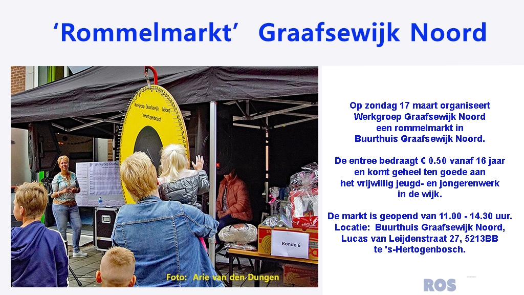 Op zondag 17 maart organiseert Werkgroep Graafsewijk Noord een rommelmarkt in Buurthuis Graafsewijk Noord.