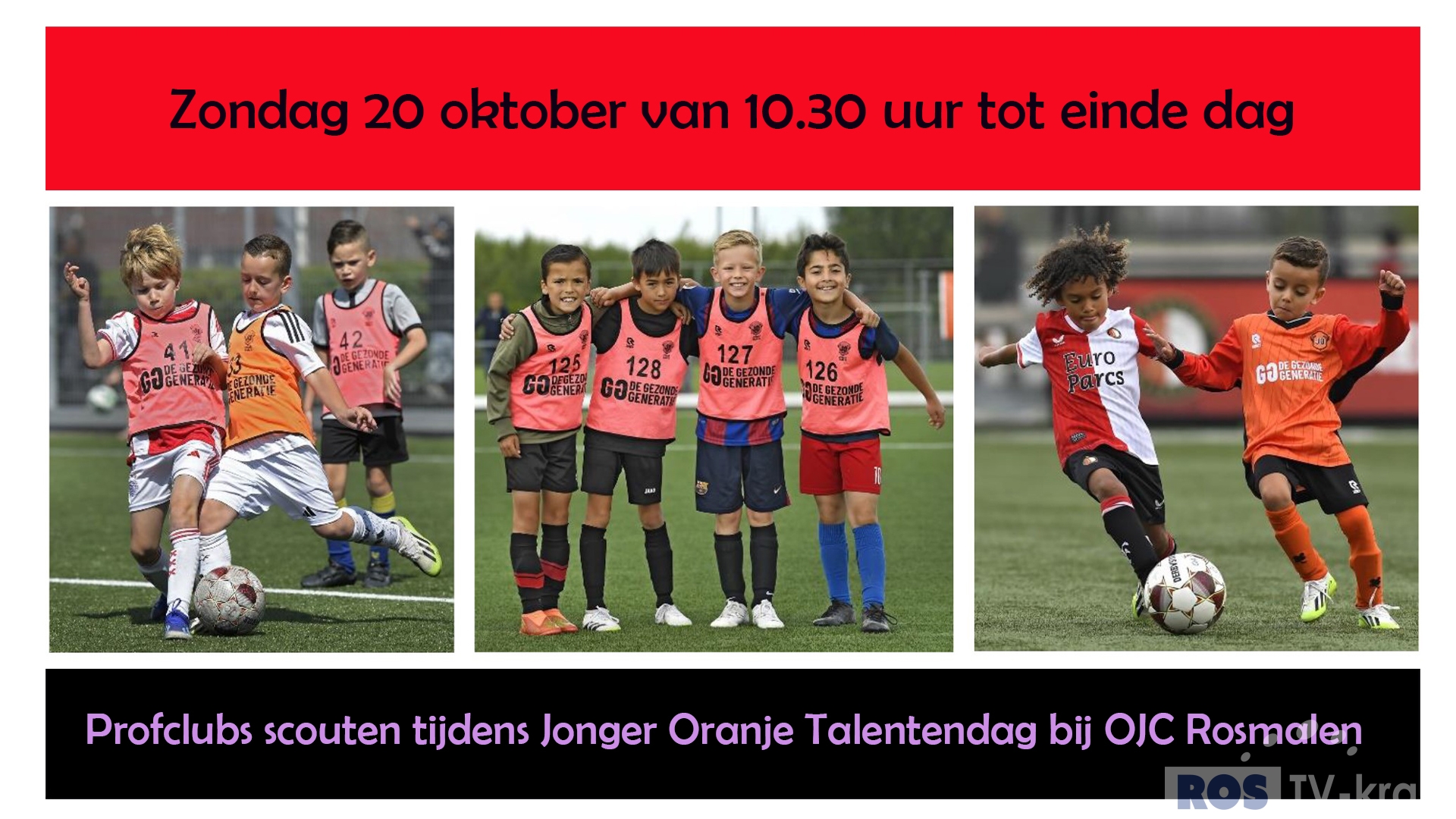 Alle jongens en meiden tussen 5 en 13 jaar die dromen van gescout te worden door een profclub kunnen hun talent tonen op zondag 20 oktober tijdens de Jonger Oranje Talentendag bij OJC Rosmalen. Jonger Oranje (sinds 2007) biedt alle kinderen een dag vol voetbalplezier in samenwerking met scouts van diverse topclubs.