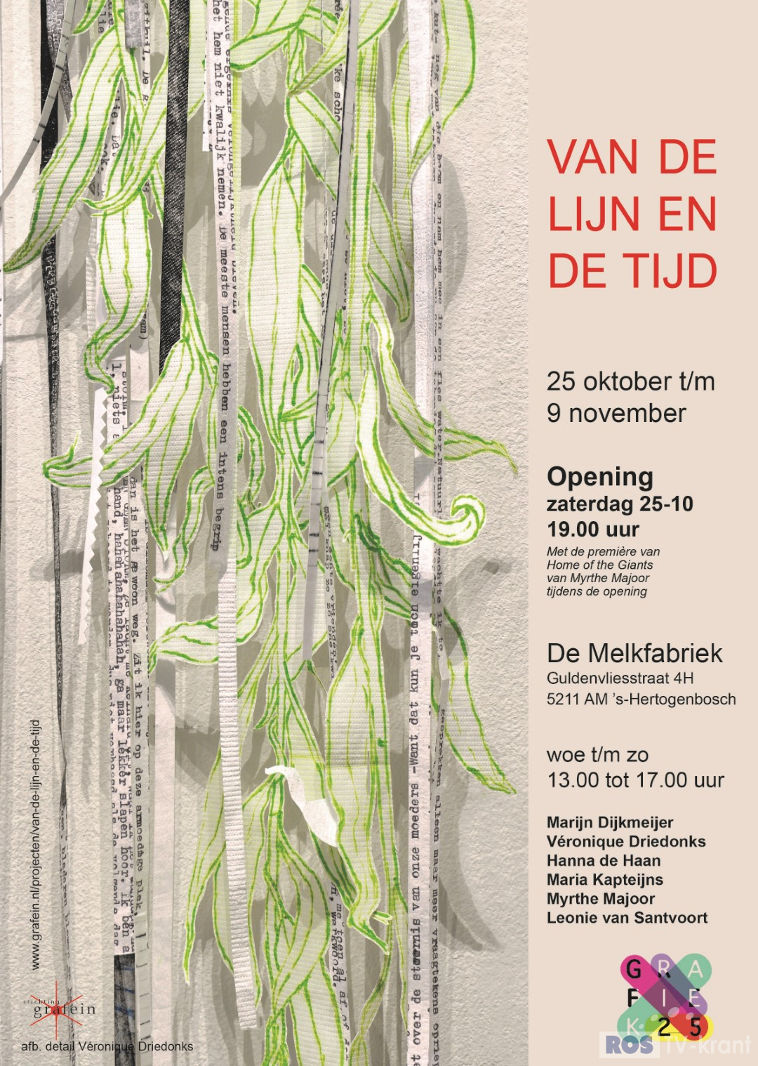 Van de Lijn en de Tijd is onderdeel van Grafiek25, een landelijk kunstevenement. Bij deze expositie ligt de focus op werk van kunstenaars die vanuit grafiek andere wegen inslaan.