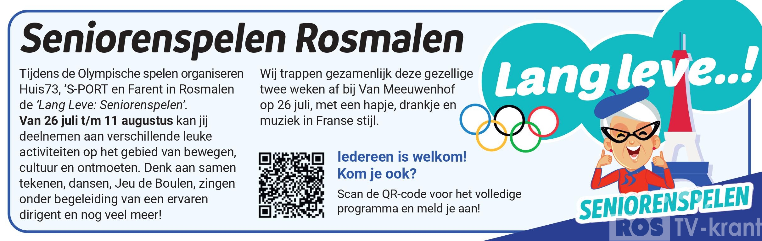 Op vrijdag 26 juli start om 14 uur de ‘Lang Leve: Seniorenspelen’ in Rosmalen, een initiatief van Huis73, ’S-PORT en Farent. Tot en met 11 augustus kunnen senioren meedoen aan…